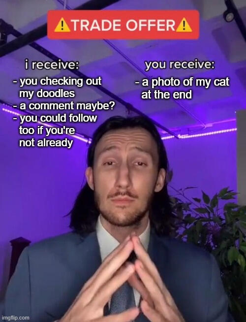 +50% or more for semi-commercial use like non-profit print or digital use for promotion and marketing purposes, stand-alone freebies — client can't gain profit from this illustration directly+75% or more for semi-commercial use as an addition to paid promotional and gift packages+100-200% or more for full commercial use like book covers, book illustrations and elements, streaming elements and other profitable use — client can gain profit from this illustration directly but under agreed and licensed conditionsCopyright Transfer not available for this momentAn individual license, previously agreeded upon on both sides, is included with every commercial order.INTELLECTUAL PROPERTY RIGHTSI keep copyright with both private and commercial commissions. Copyright transfer is not available at this moment, but I'm open to DMs.I have the right to display WIPs, timelapses and (watermarked) art in my portfolio/socials; please ask to be @. I can postpone it or not post at all if there's a request for that, but fee might apply.REFUNDSBefore first WIP - 50% refund (please be sure before commissioning me. Refund neefs to be 50% because I still need to pay taxes from paid commissions and all the transaction fees on the way)After approving first WIP - refunds are unavailableCanceling on my side - full refund + emotional damage compensation (jk… unless?).COMMUNICATIONPreferred - VGenFastest with more options but also more yapping - discord (invite link in bio or DMs)Feels professional, but makes me a tiny bit uncomfortable - emailAlso possible, but might miss them - social media (bsky, instagram, tiktok, tumblr)In case of any harassment or crossing my boundaries - block and blacklistGIFT CARDS(unavailable at the moment)ADOPTABLES(soon)